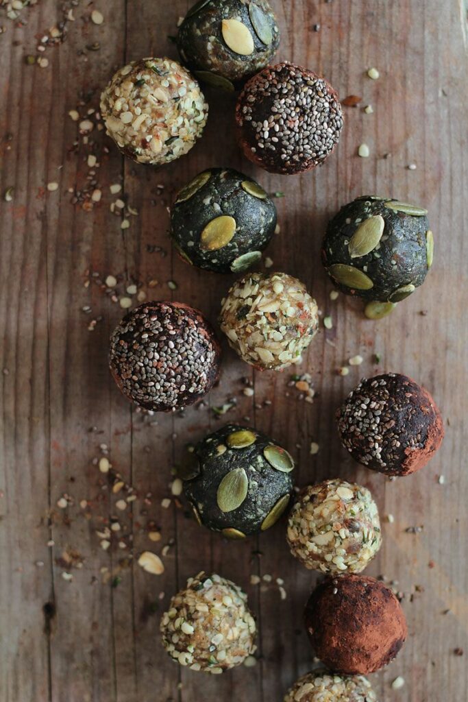 Energy balls are perfect healthy vegan snacks for busy days.